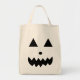 Un sac fourre-tout d'Halloween mignon avec un visage de citrouille heureux.