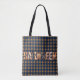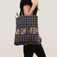 This Halloween tote bag features festive lettering with a plaid gingham background. Perfect for shopping, parties, or carrying essentials during the spooky season. A practical and stylish autumn accessory.