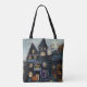 Transportez vos essentiels éffrayants dans le style avec ce Sac fourre-tout de maison mansardée gothique polyvalent. Le devant présente votre charmante famille de monstres et une scène vibrante "Halloween Party", tandis que le dos montre votre maison hantée détaillée avec les phrases "Cette maison est hantée" et "quelque chose de mauvais est ici." Ce sac durable et unique est parfait pour tout, du shopping au tour-ou-traitement!