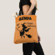 Tote Bag Halloween Witch & Bats Orange Plaid Custom Name
