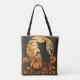 Tote Bag Hauning Chat noir sur Citrouille avec lune et chau