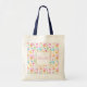 A tote bag with a delicious and whimsical pattern. Hearts, love letters, muffins, tulips and cherries bring joy and happiness to this cute little pattern. Pretty pastel colors. A white square with a faux gold foil border layered over top with your name inside.