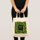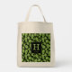 Sac fourre-tout réutilisable végétal Motif à feuilles de basalte vertes. Feuilles de basilic vert dans un motif sur un arrière - plan noir. Ajoutez votre monogramme et votre nom.