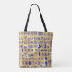 Ce sac fourre-tout personnalisé présente un thème artistique égyptien ancien. Une série d'hiéroglyphes bleus égyptiens sont imprimés sur un arrière - plan d'or.