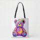 Tote Bag Hippie Teddy Bear Rainbow Psychedelic Bright Color