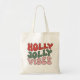 Ce sac fourre-tout d'inspiration rétro présente l'expression "Holly Jolly Vibes" en typographie audacieuse et colorée. Le design rappelle les années 60 et les années 70 pop culture, avec ses couleurs vives et sa police ludique. L'expression "Holly Jolly Vibes" reflète parfaitement l'esprit festif et gai de la période des fêtes. C'est un cadeau idéal pour les amis ou un plaisir pour vous-même, en répandant la joie des vacances partout où vous allez!