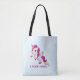 Un sac fourre-tout avec un proverbe amusant : Je fais tomber la magie. Conçu avec une licorne ailée blanche avec crinière rose, queue et sabots. La corne a des anneaux de couleur arc-en-ciel et ressemble à une sucrerie. Cette mignonne licorne s'élève sur ses pattes arrières. Coeur rose doux sur sa joue et de longs cils girly. Un arc-en-ciel à côté du mot magie.
