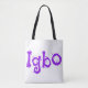 Un beau sac fourre-tout violet, ce design présente "Igbo" écrit en joli police violet sur un arrière - plan blanc. Ajoutez votre texte, nom, image, etc. Commandez les vôtres dès aujourd'hui !