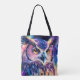 Ce sac fourre-tout d'achats unique présente une illustration colorée et créative du hibou. Cet article ferait une idée cadeau merveilleuse et utile.