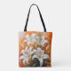 Belle lys blancs pâques sur sac fourre-tout arrière - plan orange
