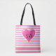Faites une déclaration avec ce sac fourre-tout de coeur rayé rose multicolore.