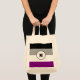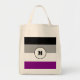 Sac fourre-tout avec asexualité (ace) drapeau de la fierté avec design motif rayé noir, gris, blanc et violet avec design modèle monogramme personnalisable