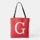 Tote Bag Initial Letter Monogram Red White Plain Simple