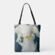 Sac fourre-tout à thème floral avec une photo de grand iris blanc après la pluie.
