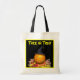 Cette photo présente un jack-o-lanterne orange avec un casquette de sorcières noires dessus. Le jack-o-lanterne a un sourire zig en zag. Ce jack-o-lanterne est assis sur un lit de feuilles colorés. Ce fourre-tout a "tromper ou traiter" imprimé sur le devant. Une bordure est également ajoutée. Un grand fourre-tout pour le tour ou le plaisir. Disponible dans des styles et des tailles assortis.
