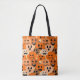 Ce sac fourre-tout a un design de jack-o-lanternes avec des visages différents se répétant dans chaque trimestre.