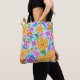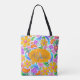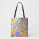 Sac fourre-tout monogramme floral jaune, violet, bleu et orange mignon et coloré. Utilisez les espaces fournis pour personnaliser avec votre propre texte. Ou utilisez le bouton Personnaliser pour modifier la police, la taille et la couleur de la police.