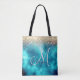 Tote Bag Joli turquoise or faux parties scintillant monogra