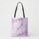 Une branche de jolies fleurs de cerisiers roses contre un arrière - plan rose orne les coins de ce sac fourre-tout.