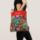 Ne vous méprenez pas sur qui appartient ce sac ! Joli fleur sauvage peint, dans les tons riches de bijoux de rouge, violet et blues. Personnalisez avec n'importe quel nom sur la bande rouge de coordination le long du sommet.