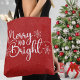 Ce sac fourre-tout comporte les mots "Joyeux et brillant" dans une belle police de caractères blanc avec des accents ornementaux de flocon de neige. L'arrière - plan rouge est recouvert d'une couche de neige brillante blanche sur toute la décoration. Un ajout unique et festif à votre collection de Noël.