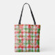Joli Rouge moderne vert et blanc twill En vichy vérifier tartan Plaid avec Joyeux Noël Texte et Noël Décorations d'arbres, de cloches et de flocons de neige design motif sans couture