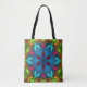 Tote Bag Kaleidoscope psychédélique bleu rose et vert