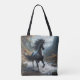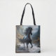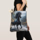 Kelpie Reusable Shopping Bag : Ce folklore sombre provient de l'Écosse où on dit que les rivières et les cours d'eau y sont hantés par un esprit d'eau changeant de forme. La Kelpie apparaît le plus souvent sous la forme d'un cheval noir mais apparaîtra aussi comme un vieil homme ou une belle jeune femme. Cette créature malveillante n'est pas gentille. Son intention est d'attirer les gens à la lisière des eaux où la Kelpie peut ensuite les faire glisser pour les noyer afin qu'ils puissent devenir son prochain repas.