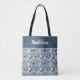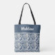 Tote Bag Koi Fish and Water Lily Blue Chinoiserie Monogram
