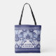 Ce modèle de sac fourre-tout présente un motif de carreaux de style talavera mexicain traditionnel bleu et blanc. Au centre, il est écrit Mère de la mariée.