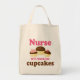 L'infirmière - travaillera pour des petits gâteaux ! Cette conception mignonne de soins fait un grand cadeau pour n'importe quel RN, étudiant de soins, diplômé de soins ou infirmière. Trois petits gâteaux de chocolat avec le givrage rose ont la citation d'infirmière dans rose les entourant.
