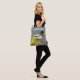 Vous avez le choix entre un élégant sac de sac fourre-tout ou de carrosserie avec un imprimé tout en haut qui présente l'image d'un canard à tête verte, debout près d'un bord d'eau, avec le texte "La vie n'est-elle pas juste canard ?" Sélectionnez votre style de sac.