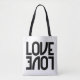 Sac monochrome moderne avec le mot "LOVE", créant un miroir harmonieux reflet image.