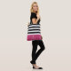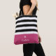 Un sac fourre-tout motif à rayures horizontales et modernes en noir et blanc avec un accent rose profond. Personnalisez en ajoutant votre nom sous le logo chic de la marguerite rétro.