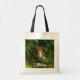 Sac fourre-tout avec une photo montrant un mignon petit renard à fourrure rouge et blanche. Entouré de feuilles et d'herbes verdoyants.