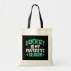 Sac fourre-tout de hockey avec texte vert et blanc sur un arrière - plan noir dit Hockey is My Favori Season!