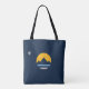 Sac fourre-tout avec le nouveau drapeau de la ville de Reno, Nevada; un drapeau bleu foncé avec un soleil jaune et des montagnes bleues au centre