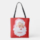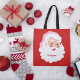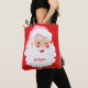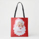 Ajoutez un nom ou un autre texte à ce sac fourre-tout avec une illustration de style vintage du Père Noël portant un chapeau de Père Noël rose. L'illustration est placée contre un arrière - plan rouge festif.