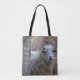 Ce sac fourre-tout présente un mouton dans les bois du Connecticut avec le message réconfortant que Dieu nous guidera.