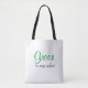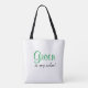 Sac fourre-tout simple avec design mignon indiquant votre couleur. Le script de citation est "Le vert est ma couleur !" dans un joli mélange typographique d'un vert doux et noir.