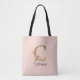 Tote Bag Lettre de nom personnalisée C Roses roses blush fe