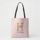 Tote Bag Lettre de nom personnalisée H Roses roses blush à