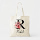 Tote Bag Lettre Florale noire R Monogramme avec nom personn