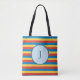 Vous pouvez être sûr de ne jamais avoir votre sac mélangé avec celui de quelqu'un d'autre avec ce fourre-tout rayé couleur primaire. Les bandes simples mais distinctives et le grand cercle avec votre initiale sur le devant vous le garantissent.