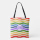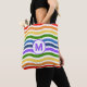 Tote Bag Lettre monogramme Summer Beach Fun Rainbow Waves