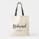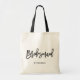 Sac fourre-tout de femme de chambre sur mesure. Sac fourre-tout moderne et classique avec écriture manuscrite noire "bridesmaid". Personnalisez en ajoutant le nom du destinataire, le hashtag du mariage ou d'autres détails. Parfait comme cadeau pour votre fête de mariage ou de mariage.