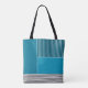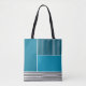 Ce sac fourre-tout a une conception géométrique d'un grand rectangle turquoise dans le coin supérieur gauche, des bandes turquoises plus foncées dans le coin supérieur droit, un rectangle turquoise plus léger sous les bandes, et des lignes noires dans le bas. Si vous aimez le design mais préférez différentes couleurs, envoyez-moi un message.