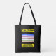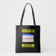 Un grand sac fourre-tout avec un message progressiste pour transporter vos livres et autres articles nécessaires. Design propose une pile de livres multicolores avec du noir sur du texte jaune qui dit "ATTENTION ! PEUT CONTENIR DES LIVRES INTERDITS".