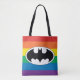 Pride DC | Logo emblématique de Batman avec des couches de couleurs arc-en-ciel à l'intérieur.