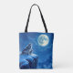 Sac fourre-tout de loup. Illustration avec des loups hurlant à la pleine lune pendant une nuit froide d'hiver debout sur une falaise.